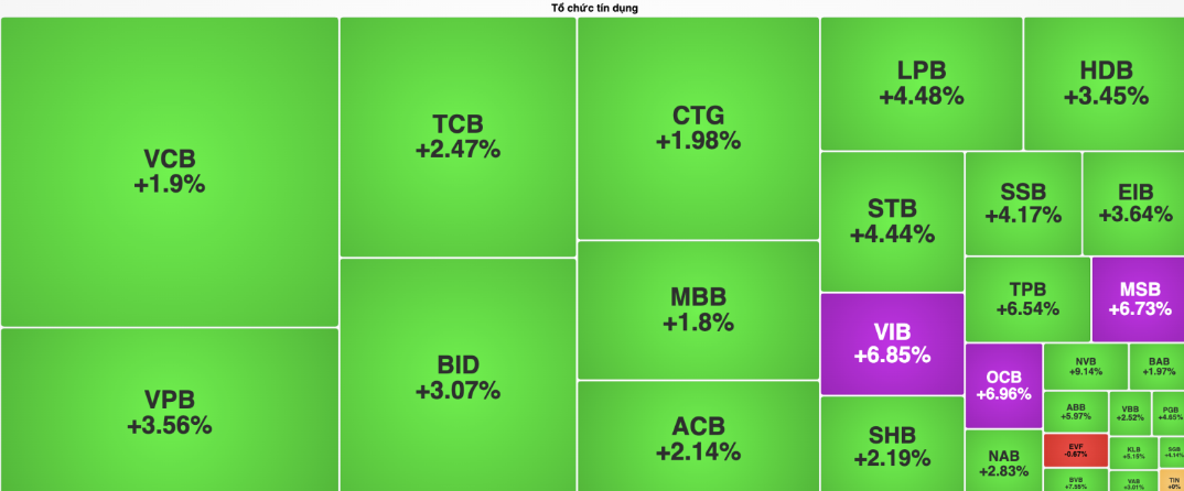 Cổ phiếu ngân hàng dẫn dắt VN-Index